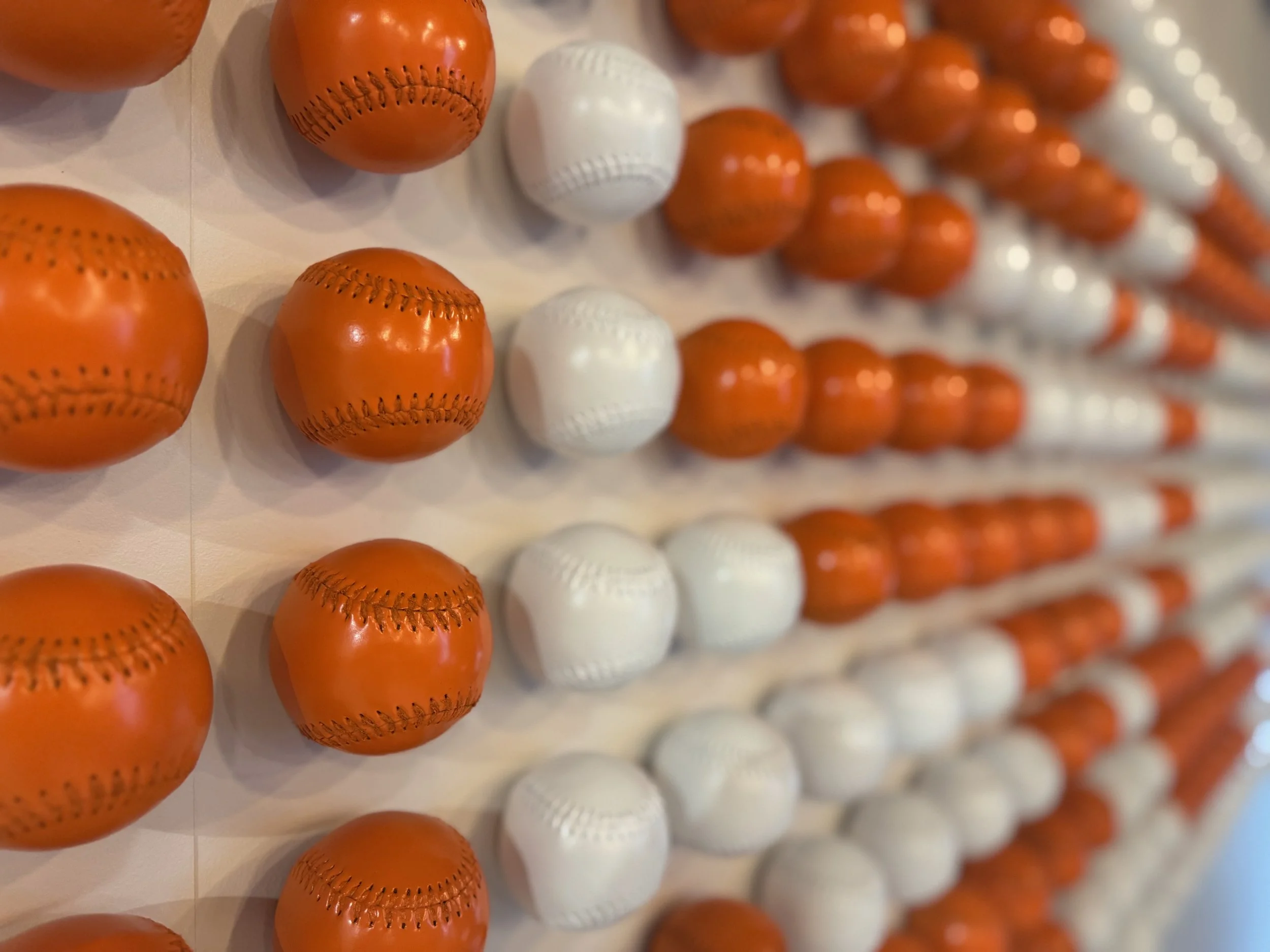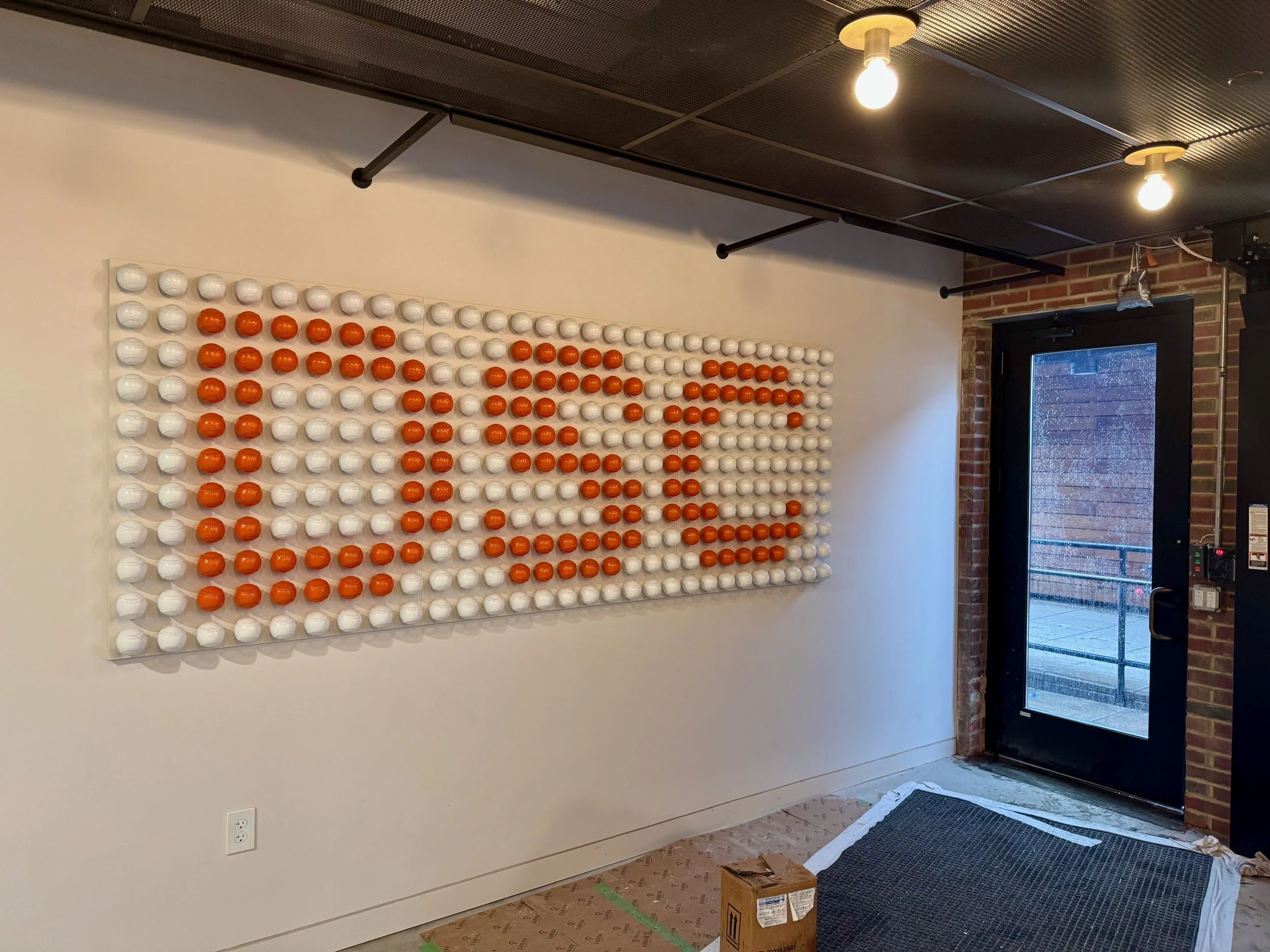 Our graphic direction was inspired by the witty Dollar Shave Club brand. We took objects unique to the company and their new location and formed a cohesive system of graphics that treat objects as art and leverage the raw materiality in the space. Located in the American Tobacco Campus in Durham, NC, we took inspiration from the history of the American Tobacco campus and iconic Durham Bulls stadium across the street from the office.